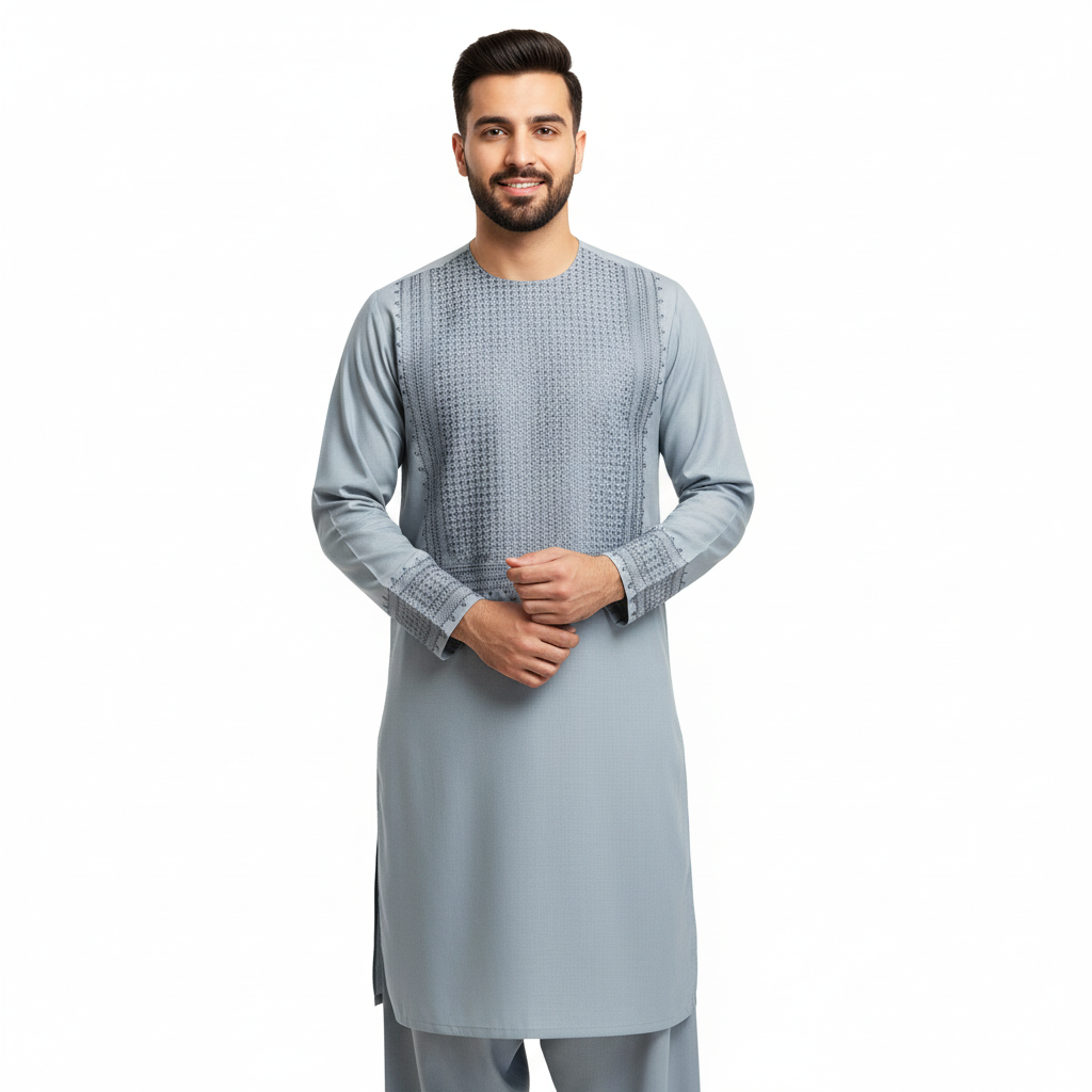 Achieve an impeccably tailored traditional look with our Afghan Men’s Embroidered Unstitched Cloth, designed for a personalized fit that ready-to-wear garments cannot replicate. Priced at an accessible 99,00 د.Ø¥, this premium fabric offers exceptional value for a bespoke cultural statement. Discover the quality and versatility that await your custom creation.