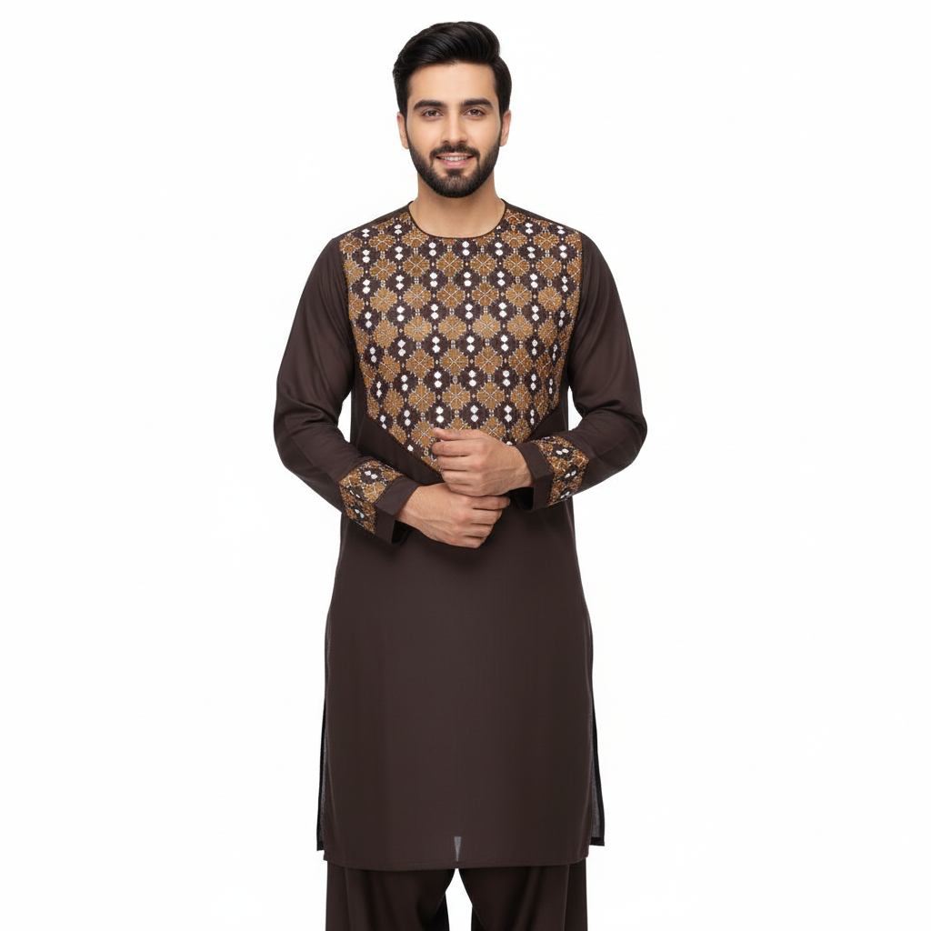 Achieve unparalleled sartorial precision and cultural authenticity with our Afghan Men’s Embroidered Unstitched Cloth. Meticulously crafted from a premium, breathable cotton blend, this fabric empowers bespoke tailoring, ensuring a garment that perfectly embodies traditional elegance and personal fit. Explore the intricate embroidery and superior drape designed for discerning individuals.