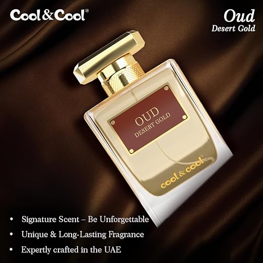 Cool & Cool Oud Desert Gold Perfume 100ML – Oriental Woody Fragrance with Saffron, Rose, Patchouli & Vanilla,Unisex Bold & Long-Lasting Scent