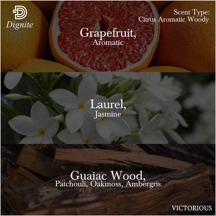 The Scent Journey: Victorious is a Citrus Aromatic Woody fragrance that bursts with refreshing citrus, uplifted by crisp aromatic accords, and grounded in a warm woody base. A scent that reflects energy, elegance, and enduring confidence. Fragrance Notes: Top : GRAPEFRUIT, AROMATIC Heart : LAUREL, JASMINE Base : GUAIAC WOOD, PATCHOULI, OAKMOSS, AMBERGRIS Compact & Travel-Friendly: The 60ml size fits easily into handbags, gym bags, or carry-ons — perfect for on-the-go freshness. Long-lasting fragrance