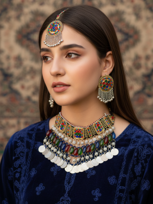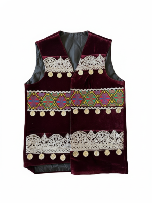 - Material Composition: Premium velvet textile, genuine antique Kuchi metal alloy coins, colored glass beads, metallic and silk embroidery threads, breathable cotton-blend inner lining.