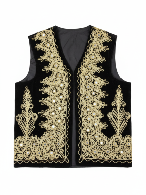 - Care Instructions: Dry clean only to preserve the integrity of the velvet, embroidery, and antique embellishments.
