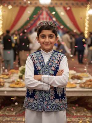 Elevate your cultural representation with unparalleled authenticity. This Royal Kuchi Traditional Hat features intricate hand-embroidered detailing, ensuring a distinctive and genuine aesthetic. Discover the meticulous craftsmanship and heritage defining this unique accessory.