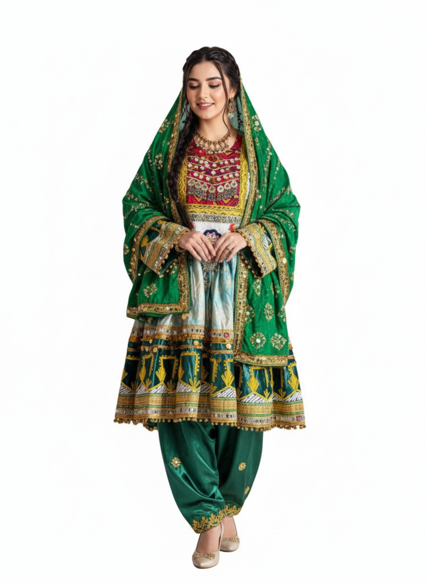 Achieve unparalleled cultural elegance and distinction for your most significant festive occasions. This Women’s Afghani Designer Dress features meticulously hand-stitched traditional embroidery, ensuring an exquisite and authentic presence. Discover the refined artistry and timeless appeal designed for your celebrations.