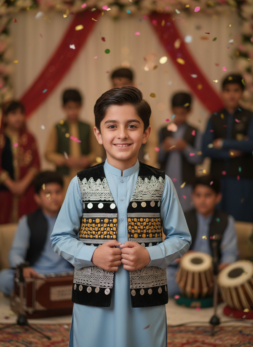 Provide your child with unparalleled comfort and distinctive style for any occasion. This Zarin Afghan Kids Vest is meticulously designed to be lightweight, ensuring unrestricted movement throughout their day. Explore the perfect fusion of cultural elegance and practical design.